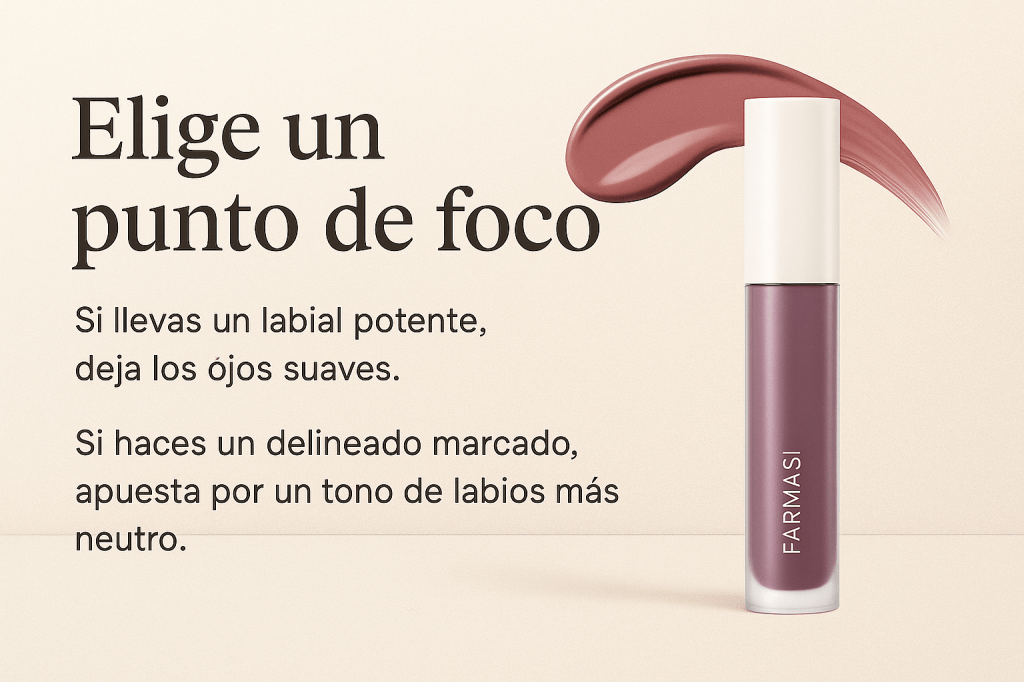 Muy fácil: decide si quieres destacar tus ojos, tus labios o tu piel. Solo uno. El resto debe acompañar, no competir.